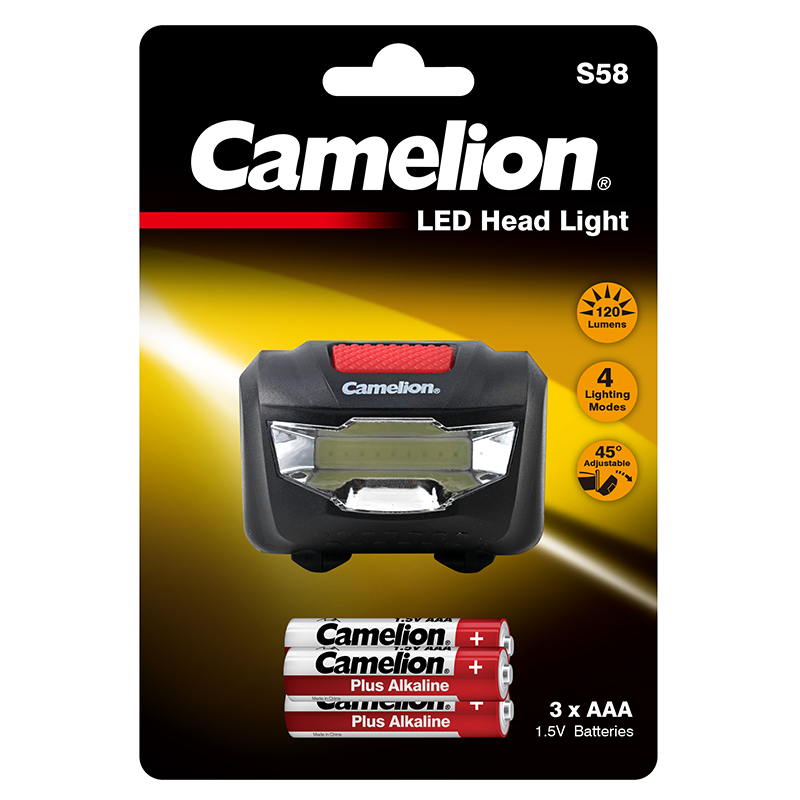 Camelion Head lights model S58 is equipped with superb light brightness and durability. It gives you bright, hands-free lighting whenever you need it. With 4 versatile lighting modes, up to 120 lumens brightness, and a 45° adjustable lighting angle, it’s perfect for camping, hiking, repairs, or emergencies. Durable and lightweight, it’s built for comfort and reliability on the go. |